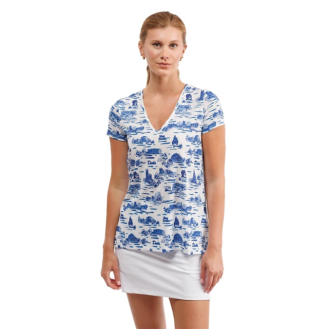 Haut à col en V fleuri Blake pour femme Smith & Quinn White Duke Blue Devils