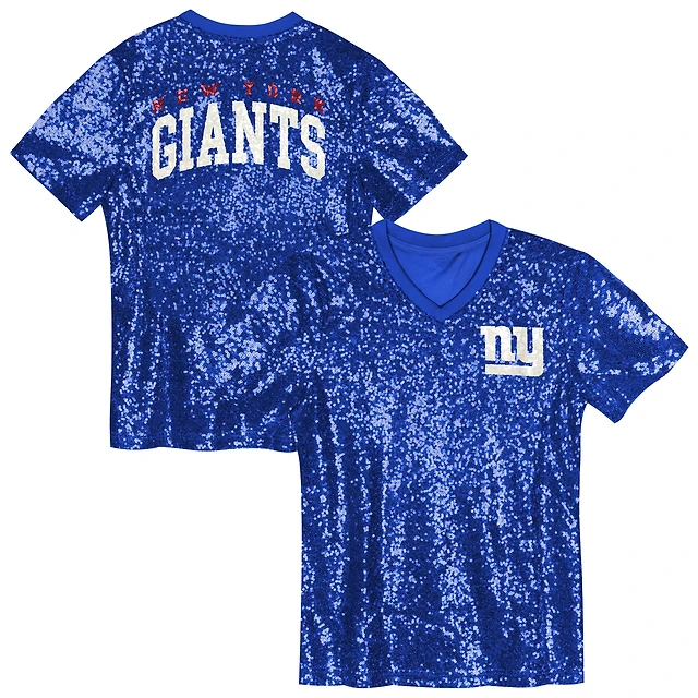 Haut à col en V sequins avec inscription Royal New York Giants pour filles