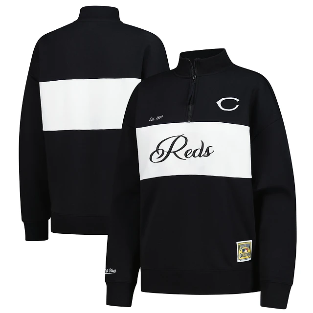 Haut à enfiler quart de zip noir pour femme Mitchell & Ness Cincinnati Reds Cooperstown Collection