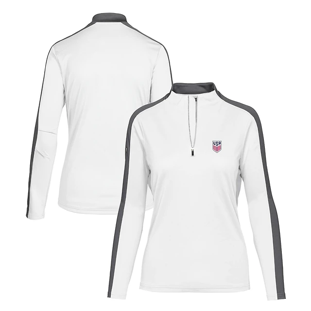 Haut à enfiler USMNT Remi blanc quart de zip pour femme Levelwear