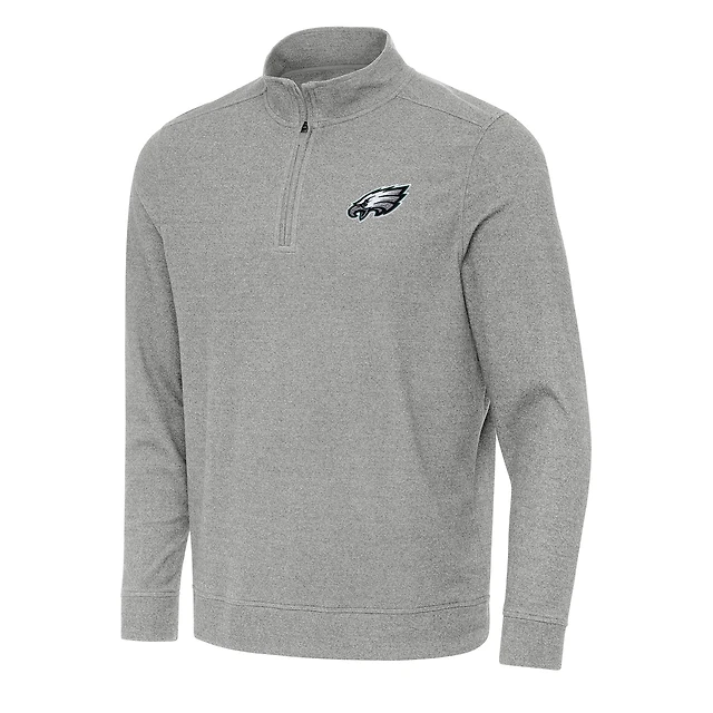 Haut à fermeture éclair discrète Antigua Heather Grey Philadelphia Eagles pour homme