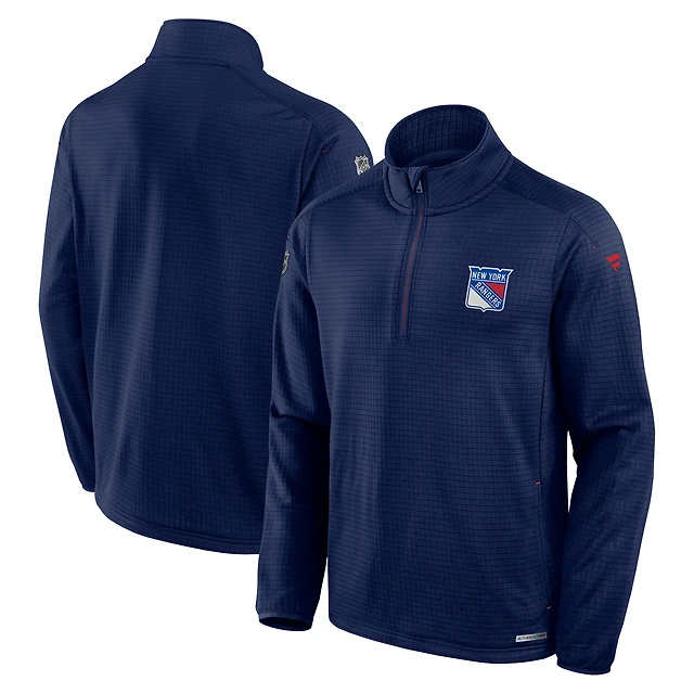 Haut à fermeture éclair quart de tour Authentic Pro Rink des Rangers New York pour homme, bleu marine