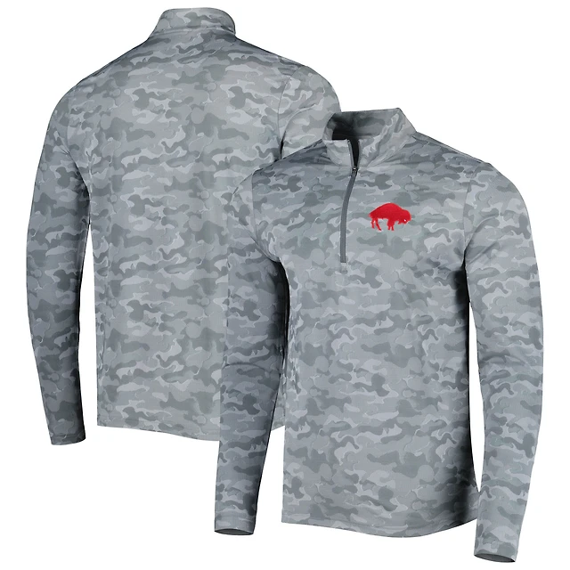Haut à fermeture éclair quart de tour rétro Antigua Grey Buffalo Bills Brigade pour homme