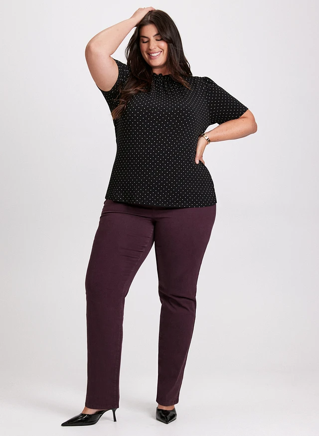 Haut à pois et jean jambe droite