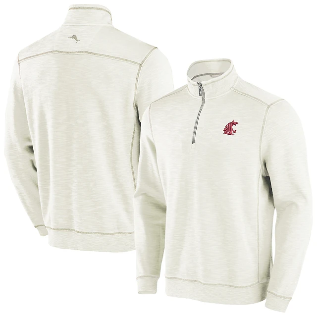 Haut à trois mélanges demi-zip Tommy Bahama pour hommes, crème, Washington State Cougars, Tobago Bay