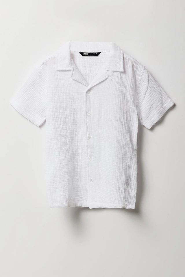 Haut carré à manches courtes en popeline avec carreaux et col pour garçon