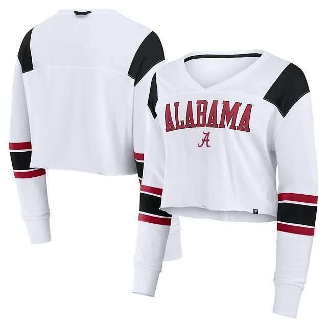 Haut court à manches longues et col en V pour femme Fanatics White Alabama Crimson Tide Training Camp