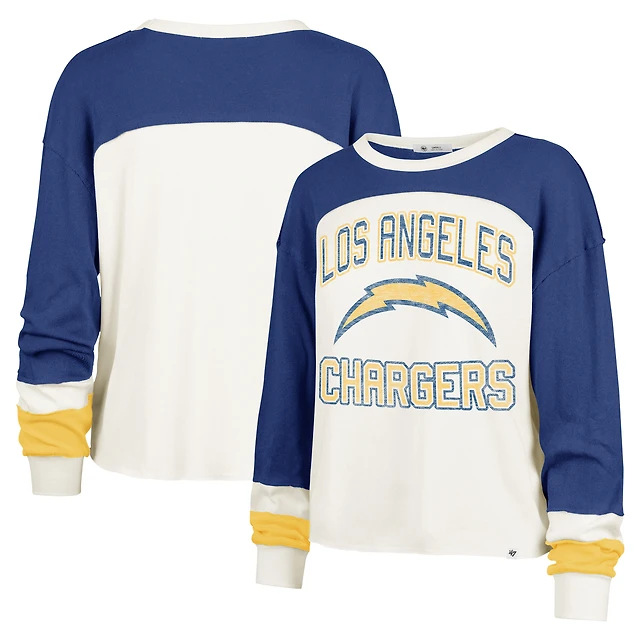 Haut court à manches longues raglan Double Header Curve '47 Cream Los Angeles Chargers pour femme