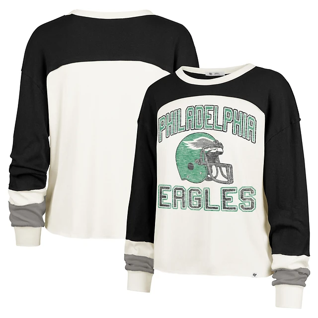 Haut court à manches longues raglan double tête Philadelphia Eagles '47 Cream pour femme
