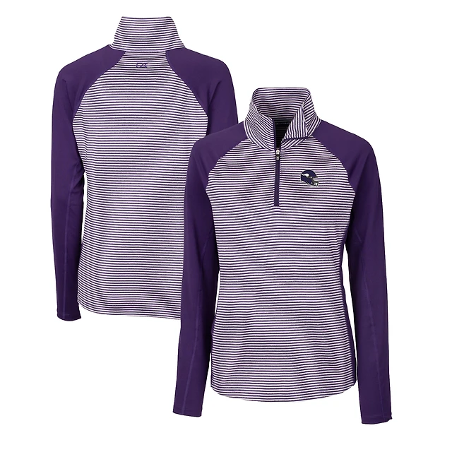 Haut demi-zippé extensible à rayures ton sur DryTec Forge pour femme, violet, avec logo du casque des Vikings Minnesota, Cutter & Buck