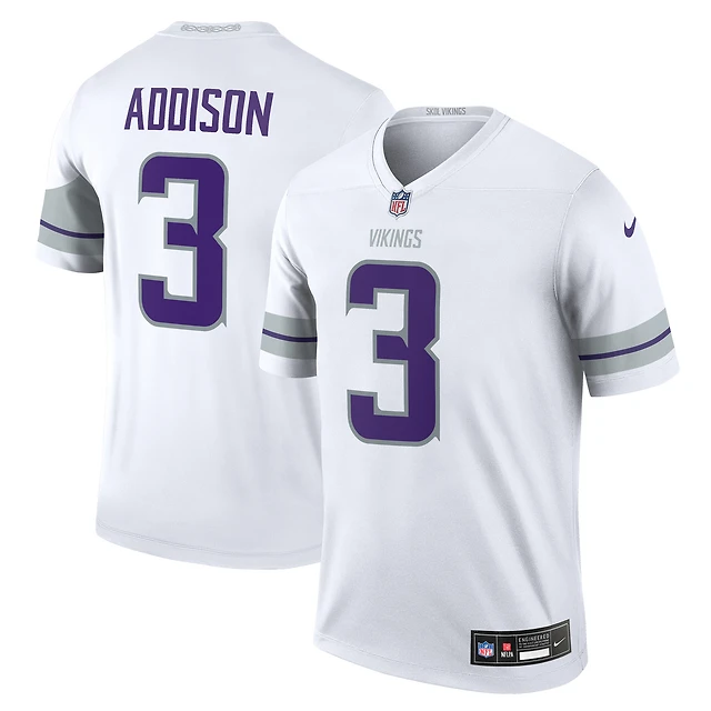 Haut Nike Jordan Addison blanc pour homme, joueur légendaire des Vikings du Minnesota