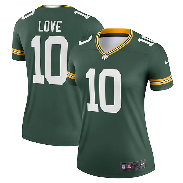 Haut Nike Jordan Love Green pour femme, joueur légendaire des Packers de Bay