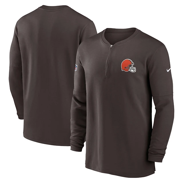 Haut Nike marron Cleveland Browns 2023 Sideline Performance à manches longues et quart de zip pour homme
