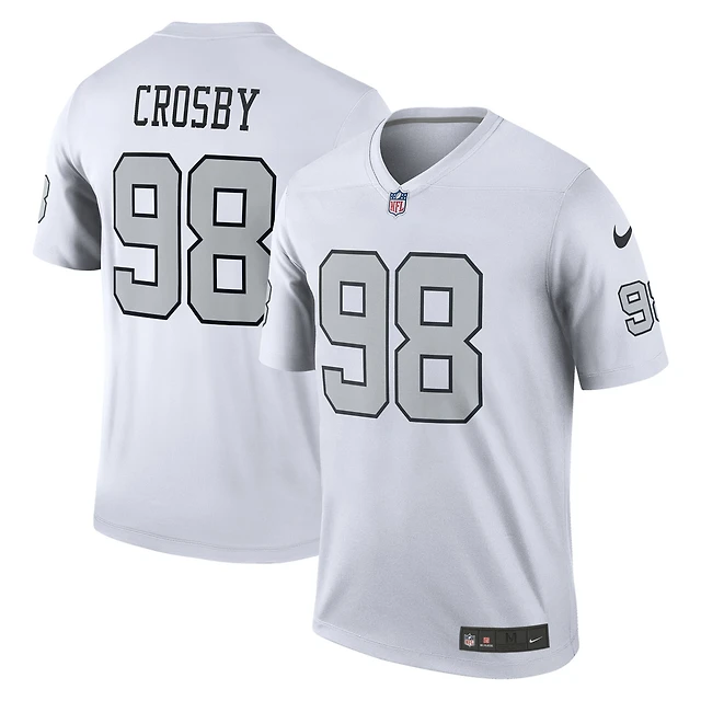 Haut Nike Maxx Crosby blanc pour homme, modèle Legend Player Performance des Las Vegas Raiders
