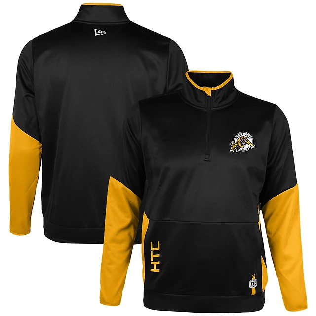 Haut polaire performance noir Hamilton Tiger-Cats Sideline pour homme New Era, zippé en quart de tour