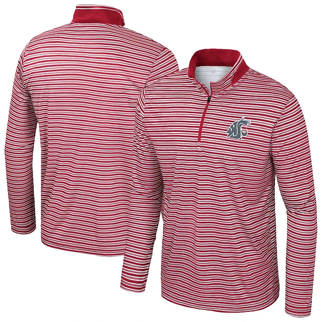 Haut rayé à glissière quart de tour pour homme Colosseum Crimson Washington State Cougars