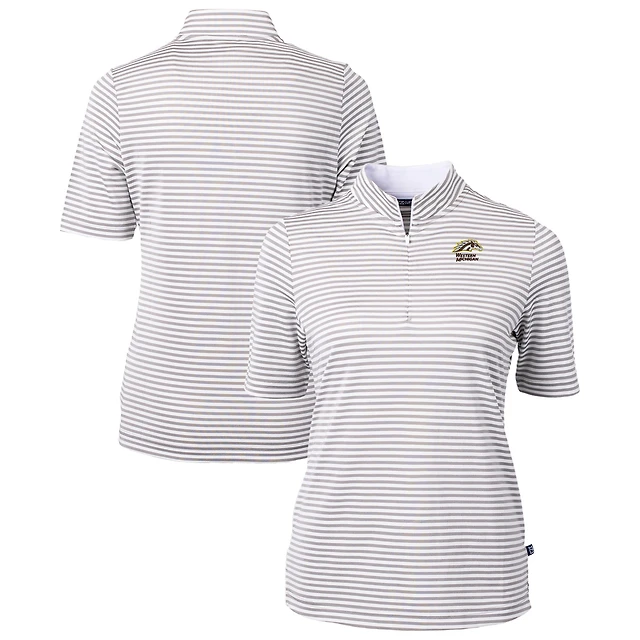 Haut zippé en mélange recyclé à rayures et piqué écologique pour femme, gris, des Broncos de Western Michigan, Cutter & Buck