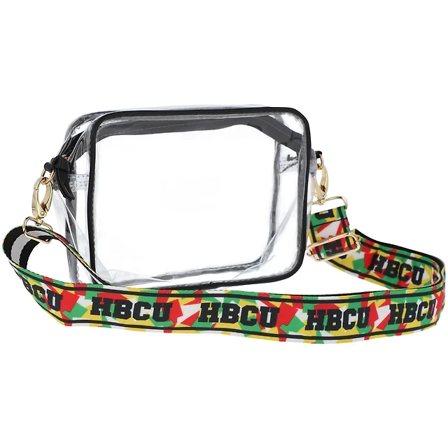 HBCU Clear Purse avec bandoulière décorée réversible