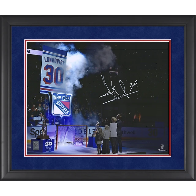 Henrik Lundqvist New York Rangers Autographed Framed 16" x 20" Jersey Retirement Banner Raising Photograph