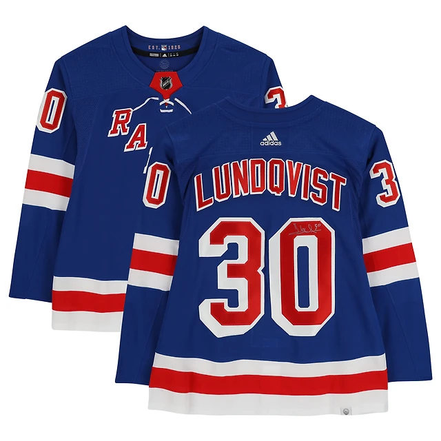 Henrik Lundqvist New York Rangers Maillot Authentique Adidas Bleu Autographié