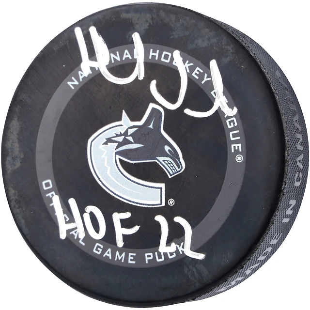 Henrik Sedin Vancouver Canucks Rondelle de jeu officielle autographiée avec inscription "HOF 22"