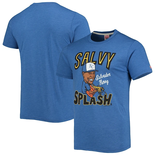 Hommage pour hommes Salvador Perez Royal Kansas City Royals Caricature T-shirt à trois mélanges