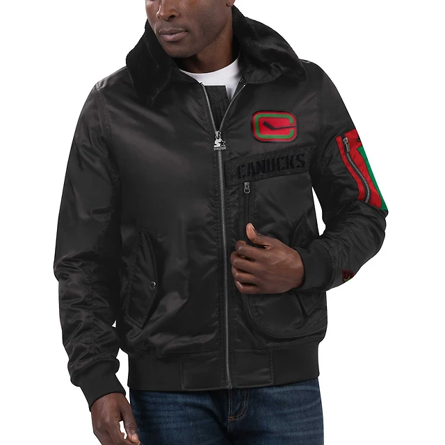 Homme Starter x Ty Mopkins Black Vancouver Canucks History Month Satin - Veste à fermeture éclair complète