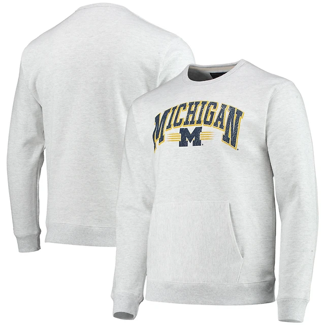 Hommes League Collegiate Wear Heathered Grey Michigan Wolverines Upperclassman Pocket Pullover Sweatshirt