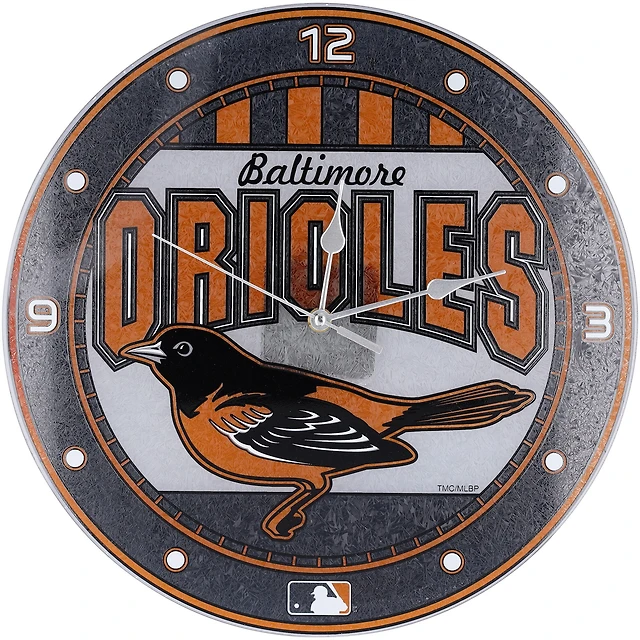 Horloge murale en verre d'art Orioles de Baltimore de 12 po