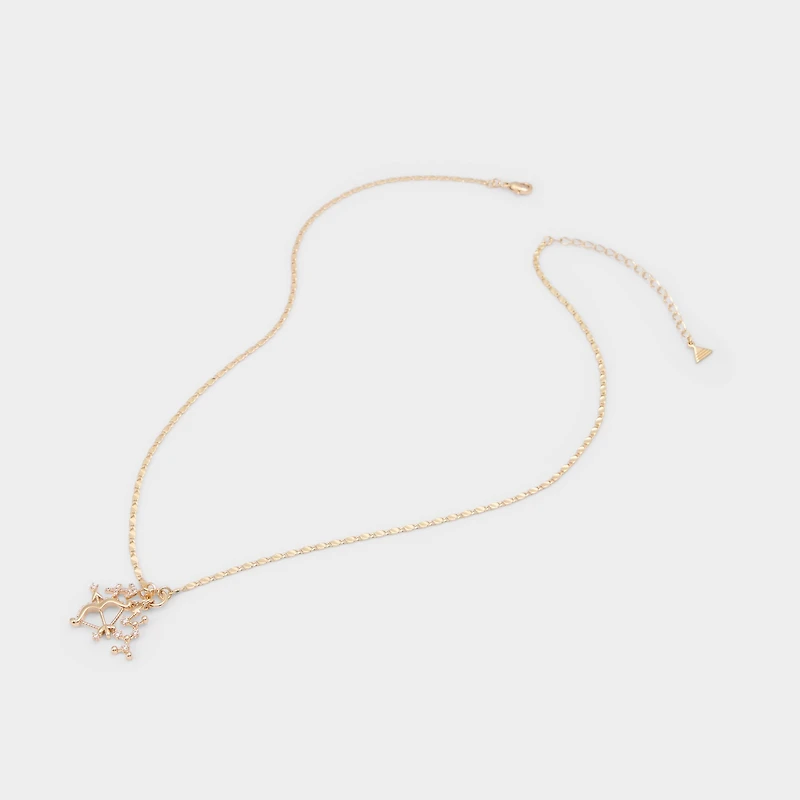 Zodiac pendants glow along a warm gold-tone chain, catching light with every turn and turning the piece into a conversation starter that clicks with every step. Layer it with a blazer for cocktails, or top off white tees and denim for easy weekend vibes.