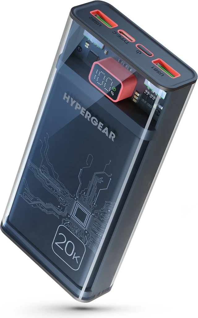 HyperGear 20000mAh Transparent 20W Single Port USB-C and 18W Dual Port USB-A Portable Power Bank