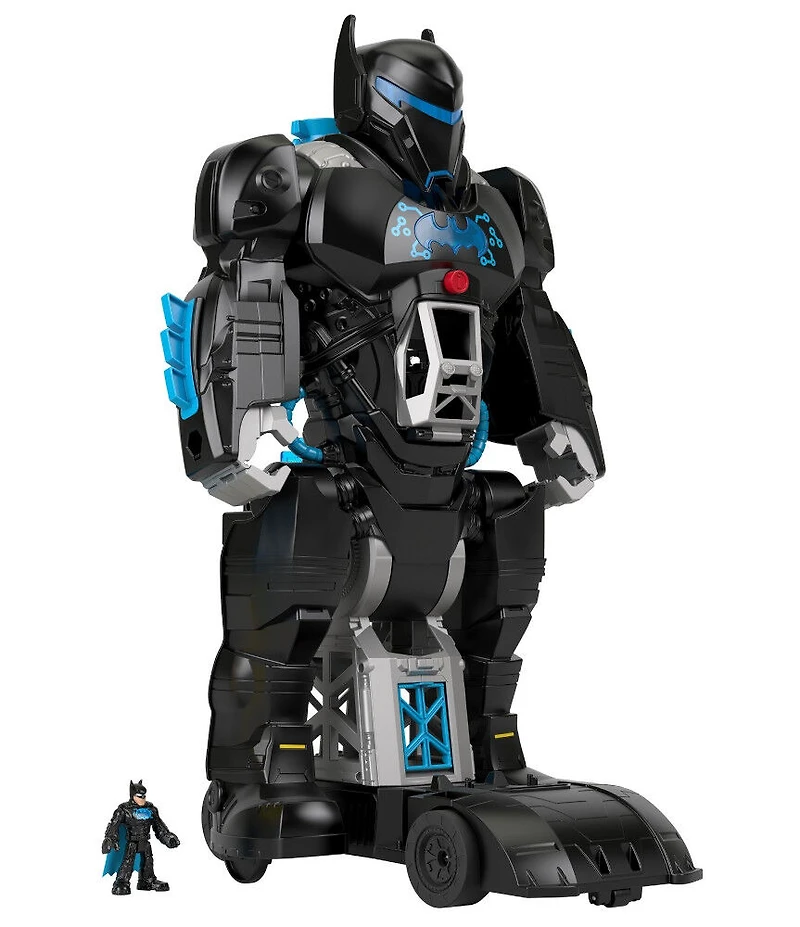 Young crime fighters can create their own epic Batman adventures with the Imaginext DC Super Friends Bat-Tech Batbot playset from Fisher-Price. With the turn of a Power Pad, the large robot transforms into flight mode with awesome lights and action sounds. Then kids can push the Batbot along to "soar" to the rescue! This action-packed, 2-in-1 playset features a light-up control panel, multiple projectile launchers, and a jail cell to lock up the Super-Villains of Gotham City.