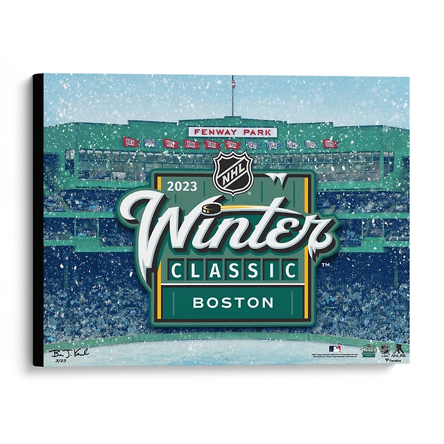 Impression giclée sur toile tendue 20" x 24" des Penguins de Pittsburgh contre les Bruins de Boston, Classique d'hiver de la LNH 2023 - Conçue et signée par l'artiste Brian Konnick - Édition limitée à 23 exemplaires