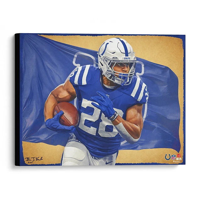 Impression giclée sur toile tendue de Jonathan Taylor Indianapolis Colts 20" x 24" - Conçue et signée par l'artiste Brian Konnick - Édition limitée 25