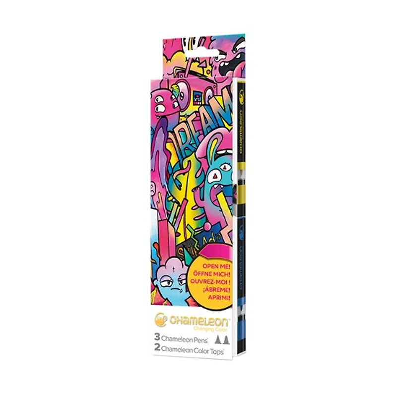 Unleash your creativity with this introductory kit of water-based, dry-safe inks that won’t bleed through your paper. The innovative dual ink system makes writing, drawing and coloring with these pens endless fun. Did you know there is ink both in the pens and in the caps? Just swap the caps to blend over 20 color combinations from this set of 3 color pens and 2 color tops. The fine-point pens have 0.3 mm metal-clad Japanese tips with a precision well suited to calligraphy. Perfect for artists, writers, students and professionals. The 5-pack includes: Light Peach, Fuchsia, Turquoise, Royal Blue and Summer Sun.