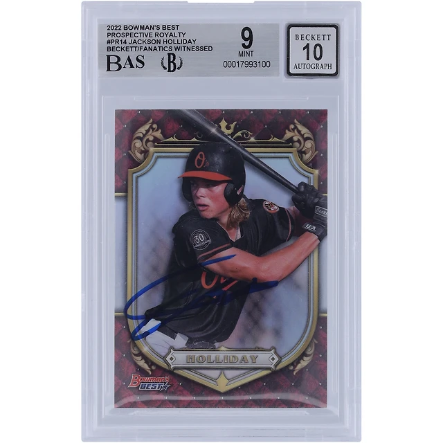 Jackson Holliday Baltimore Orioles a autographié la meilleure carte de royauté prospective Bowman's 2022 #PR-14 Beckett Fanatics Witnessed Authenticated 9/10 Card