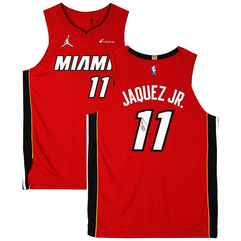 If Jaime Jaquez Jr. is one of your favorite players on the Miami Heat, then be sure to pick up this autographed Jordan Brand Red Statement Authentic Jersey. Featuring a hand-signed signature from the first-round pick in the 2023 NBA Draft and authentic team details, this jersey is a must-have for any die-hard Miami Heat fan or serious NBA collector.