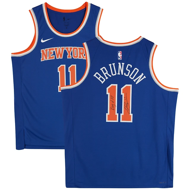 Jalen Brunson New York Knicks Autographed Nike Blue Icon Swingman Jersey with "King of NY" Inscription