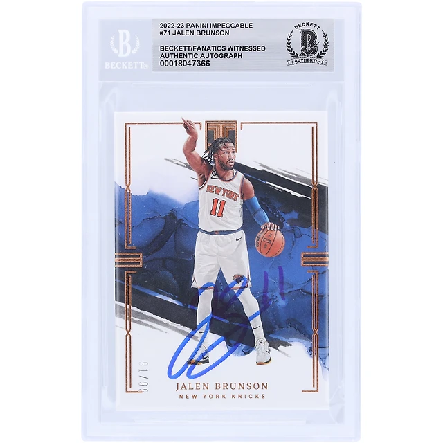 Jalen Brunson New York Knicks Autographié 2022-23 Panini Impeccable #71 #/99 Beckett Fanatics Witnessed Authenticated Card