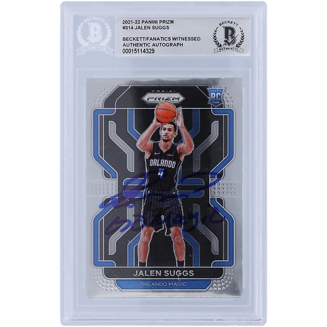 Jalen Suggs Orlando Magic Autographié 2021-22 Panini Prizm #314 Beckett Fanatics a été témoin d'une carte de recrue authentifiée avec l'inscription « Go Magic »