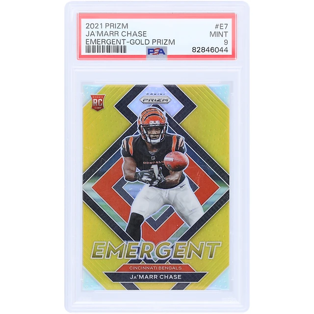 Ja'Marr Chase Cincinnati Bengals 2021 Panini Prizm Emergent Gold Prizm #E-7 #7/10 PSA authentifié 9 Rookie Card