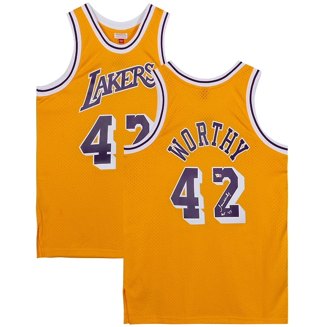 James Worthy Los Angeles Lakers Autographed Mitchell and Ness Gold 1984-1985 Swingman Jersey with "HOF 03" Inscription