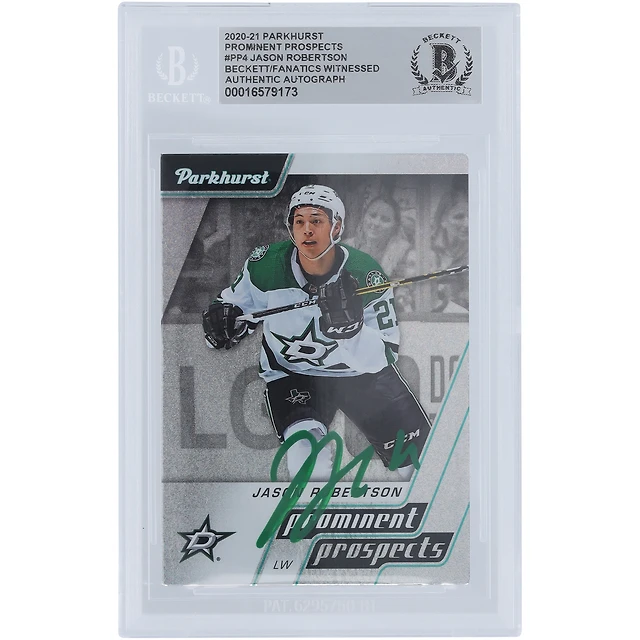 Jason Robertson Dallas Stars Autographié 2020-21 Upper Deck Parkhurst Prominent Prospects Green Ink #PP4 Beckett Fanatics Witnessed Rookie Card Authentifié