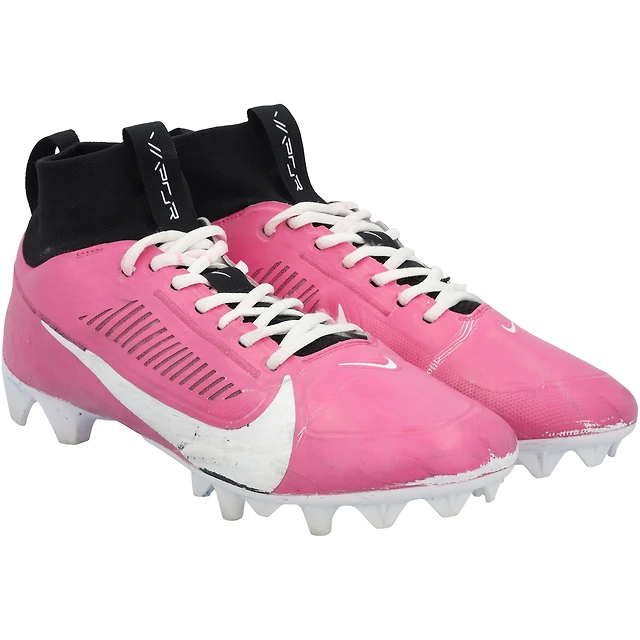 Jaxon Smith-Njigba, chaussures Nike roses utilisées par les Seattle Seahawks lors du match contre les Buffalo Bills le 27 octobre 2024