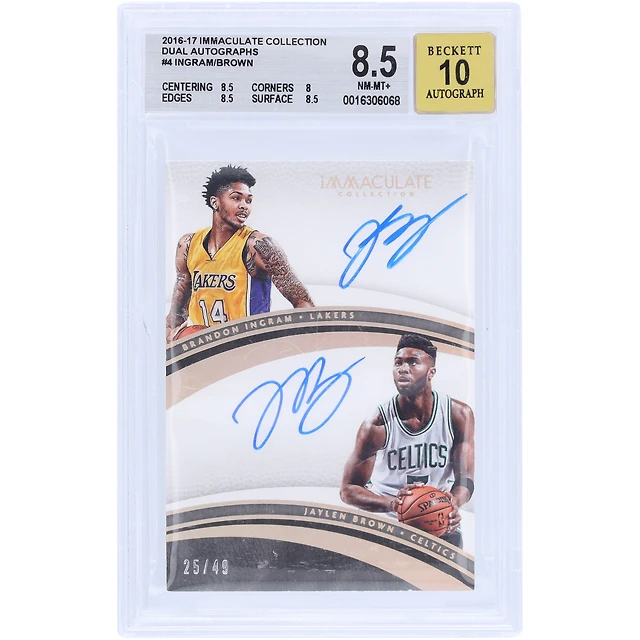 Jaylen Brown & Brandon Ingram Autographed 2016-17 Panini Immaculate Collection Dual Sig #2 #25/49 BGS Authenticated 8.5/10 Rookie Card - 8.5,8,8.5,8.5 Subgrades