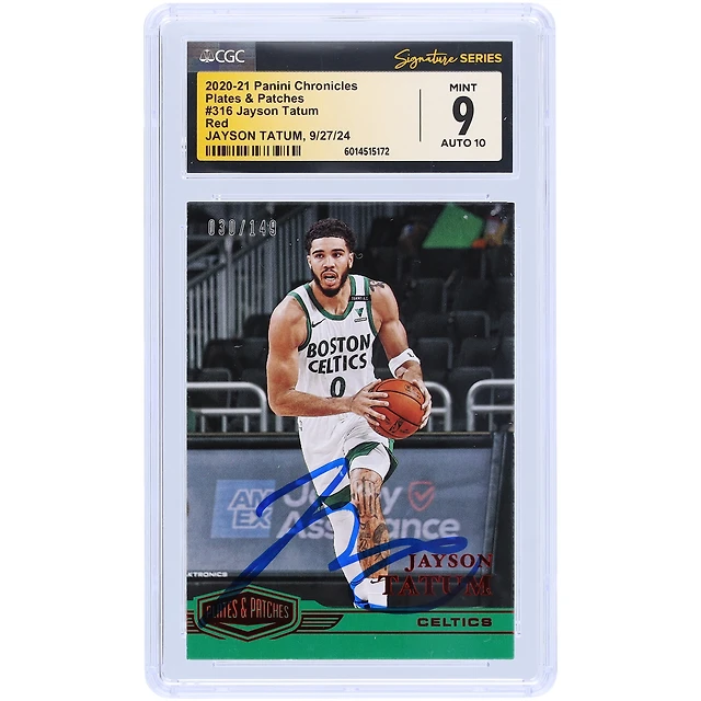 Jayson Tatum Boston Celtics Autographed 2020-21 Panini Chronicles Plates & Patches Red #316 #/149 CGC Fanatics Witnessed Authenticated 9/10 Card