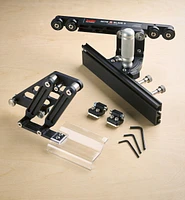 To provide stable support during cross-grain routing, this carriage travels on bearing-mounted acetal rollers that glide along the integrated T-track of a JessEm Mast-R-Fence II, Mast-R-Fence III or TA Fence. It mounts quickly and securely without tools or fasteners, and can be easily removed when not in use.
