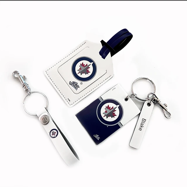 Jets de Winnipeg - Coffret cadeau trois pièces en cuir avec étiquette personnalisée