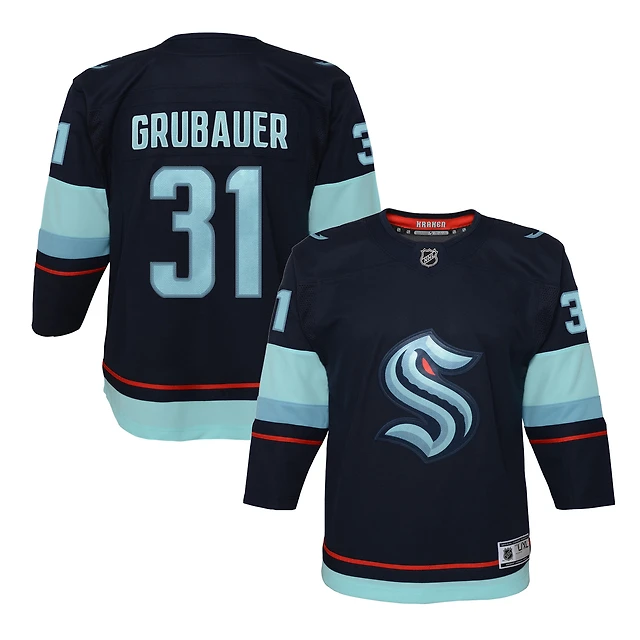 Jeune Philipp Grubauer Deep Sea Blue Seattle Kraken Home Premier Player - Maillot