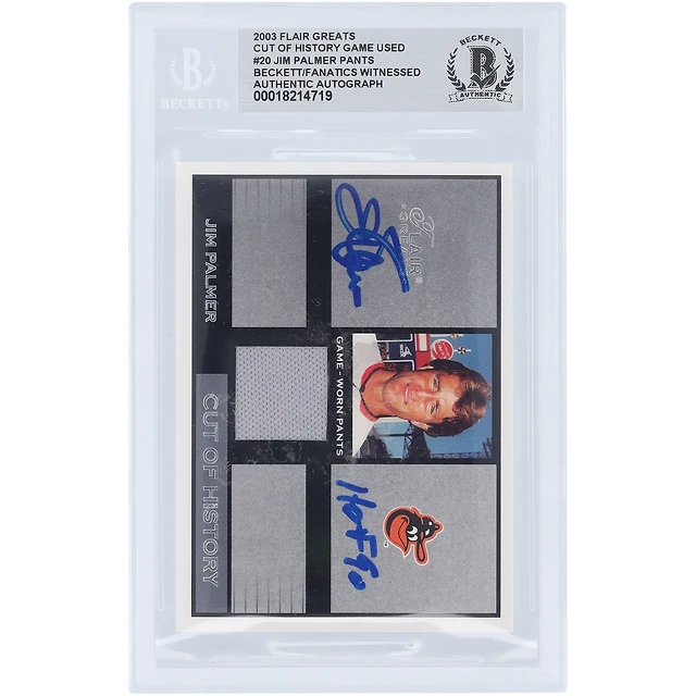Jim Palmer Baltimore Orioles Autographié 2003 Flair Greats Cut of History Grey Pants Relic #FG-JP Beckett Fanatics Witnessed Carte authentifiée avec inscription "HOF 90"